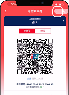 打開港鐵乘車碼,點擊右上角「...」設置