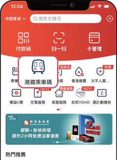 於首頁點擊「港鐵乘車碼」